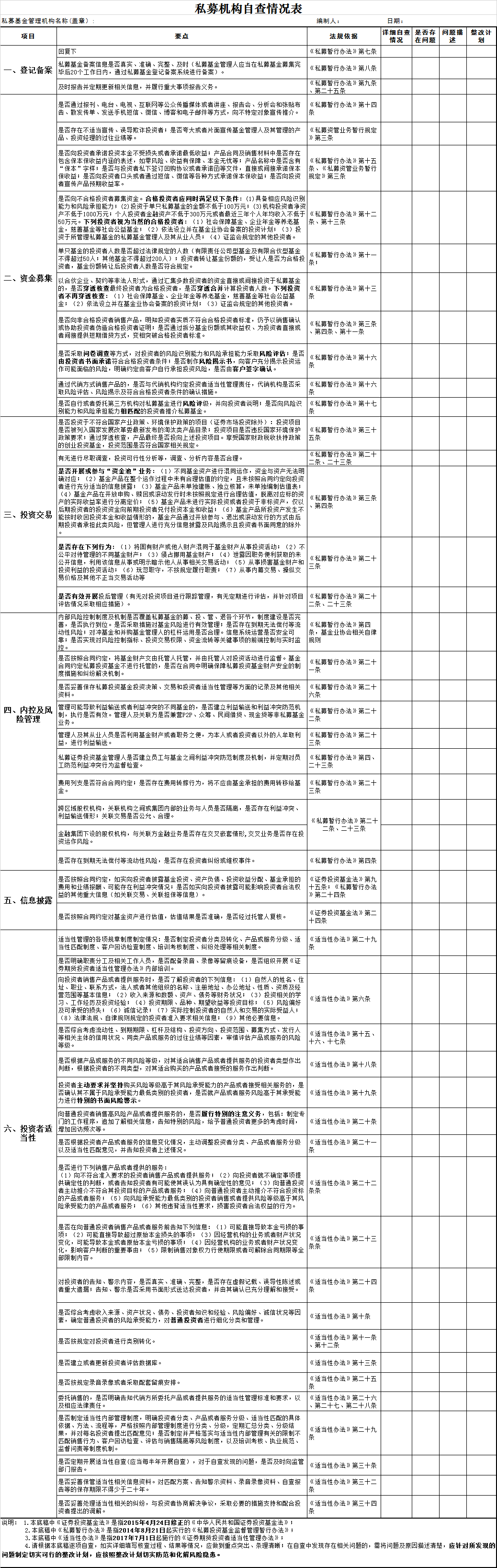 ■ 私募机构自查情况表
