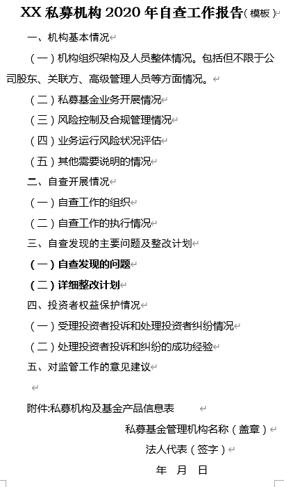 附件1:私募机构自查情况表